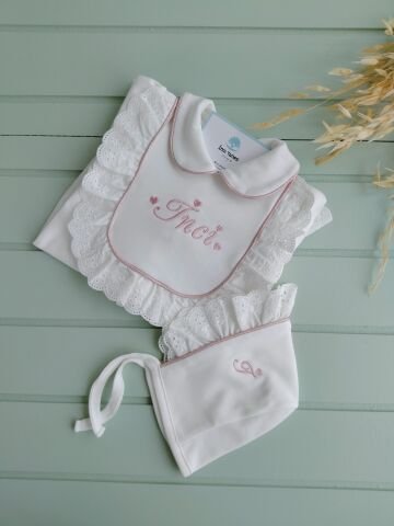 Fistolu Kız Tulum + Sapka + Eldiven Pudra Pembe